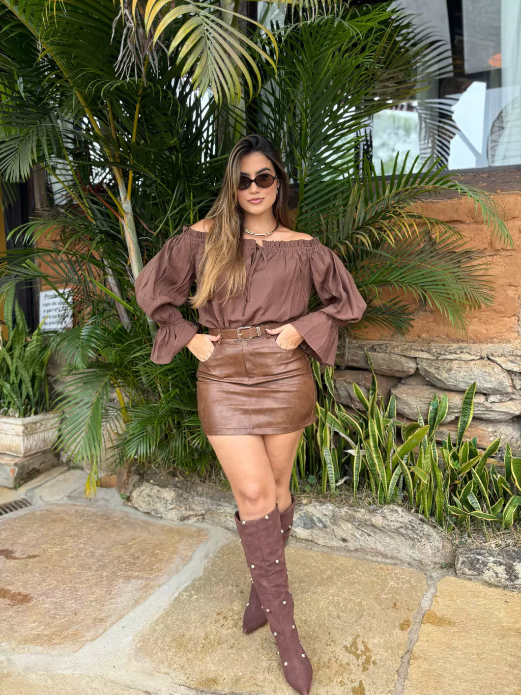 Bata Luna Ombro a Ombro com Amarração Marrom