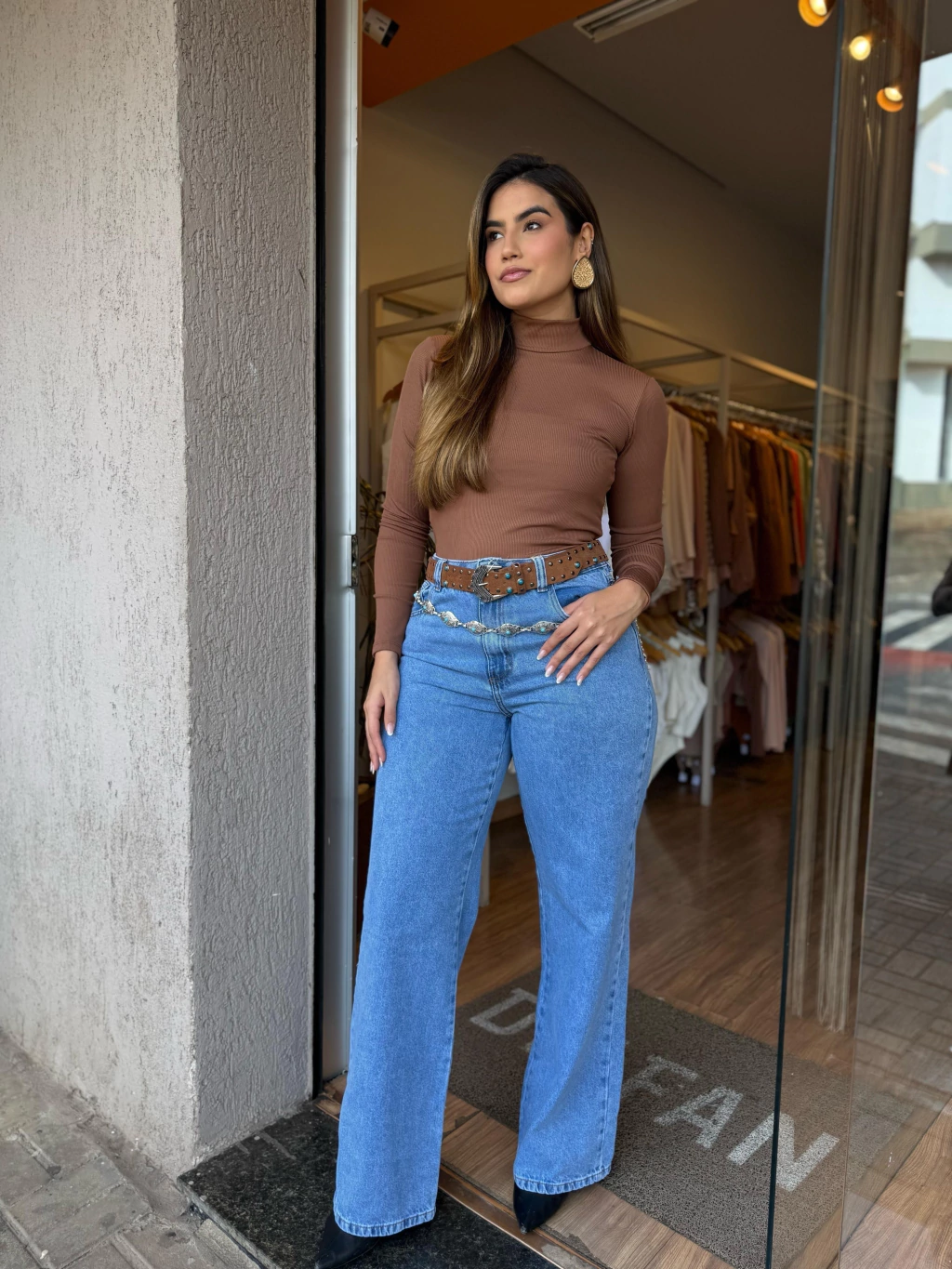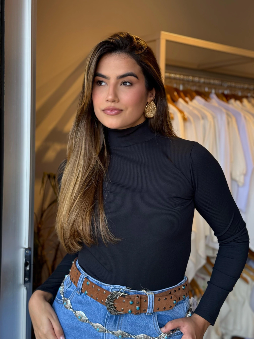 Com gola alta clássica e mangas longas de 54 cm, a modelagem é ideal para produções de meia-estação e dias mais frescos, sem perder o charme. Seu comprimento de 59 cm é perfeito para usar tanto por dentro quanto por fora de calças e saias.