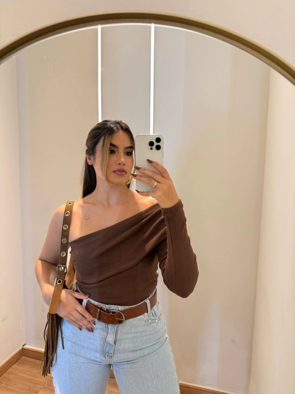 A Blusa Ribana Sofi é puro charme com um toque de irreverência. Em modelagem assimétrica, ela traz manga única e um detalhe sobreposto no busto, feito do mesmo tecido, que confere caimento diferenciado e valoriza a região do colo com sofisticação.