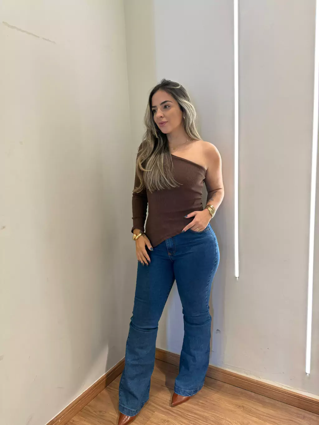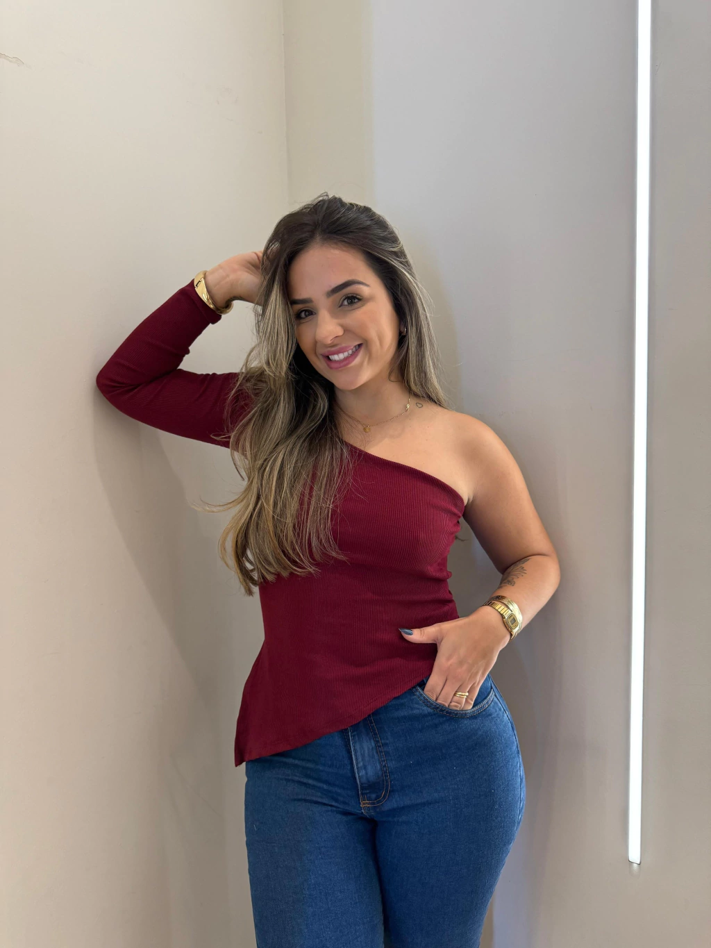 A Blusa Sofia é a escolha ideal para quem busca um visual moderno, confortável e cheio de charme. Com modelagem de um ombro só e nula manga, ela traz um toque fashionista na medida certa. Confeccionada em tecido canelado ribana, a peça tem caimento ajustado e confortável, com excelente elasticidade.