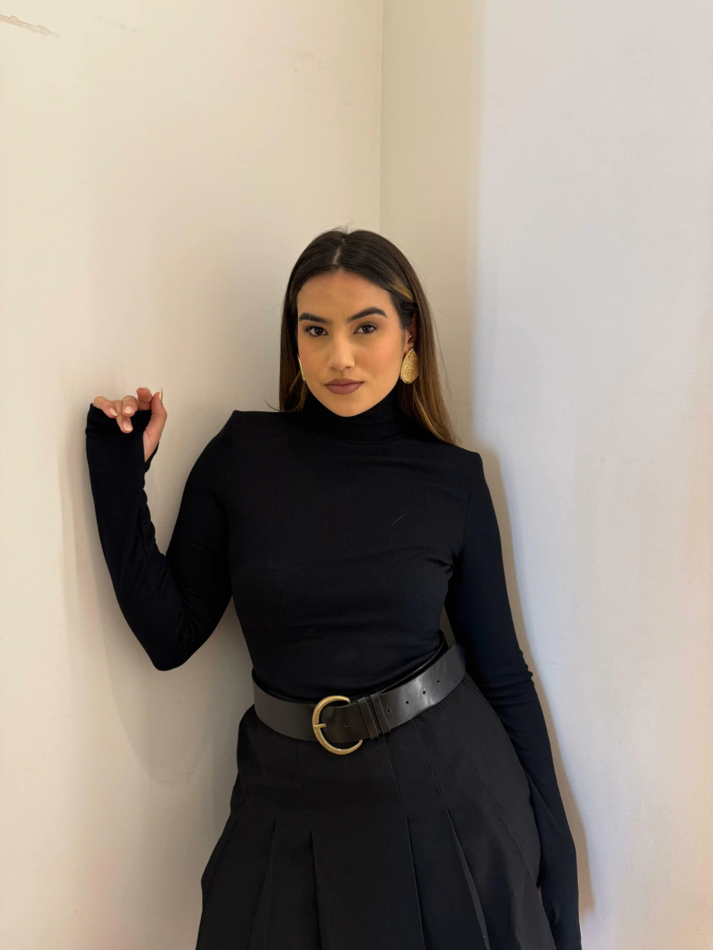 Confeccionada em malha canelada premium, com composição de 96% viscose e 4% elastano, ela oferece toque extremamente macio, caimento impecável, leveza e elasticidade na medida certa. Uma peça que abraça o corpo, valoriza a silhueta e, ao mesmo tempo, entrega aquele conforto que a gente ama.