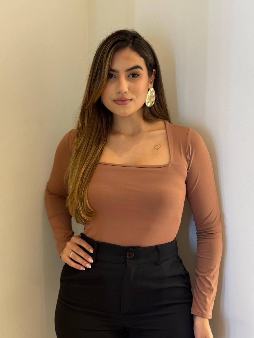 Body Aline Manga Longa Decote Quadrado – Poliamida