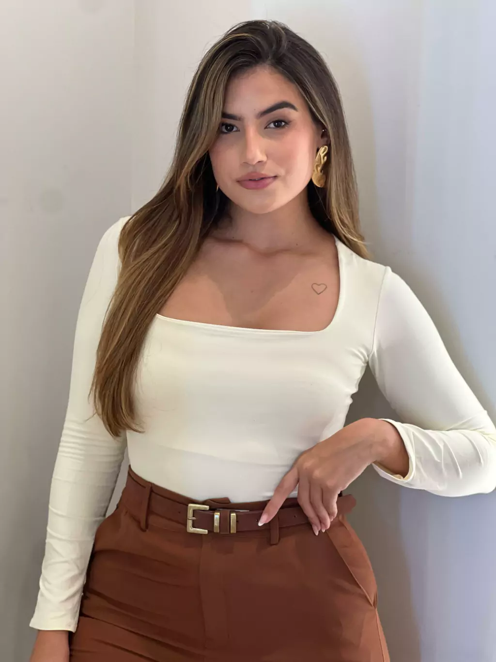 Com design moderno e elegante, esse body é a peça-chave para compor looks versáteis e cheios de estilo. Confeccionado em poliamida, possui toque macio, alta elasticidade e excelente ajuste ao corpo. O decote quadrado valoriza o colo de forma sutil e sofisticada, enquanto as mangas longas trazem equilíbrio e elegância à peça. Tamanho único, veste bem diferentes silhuetas com muito conforto.