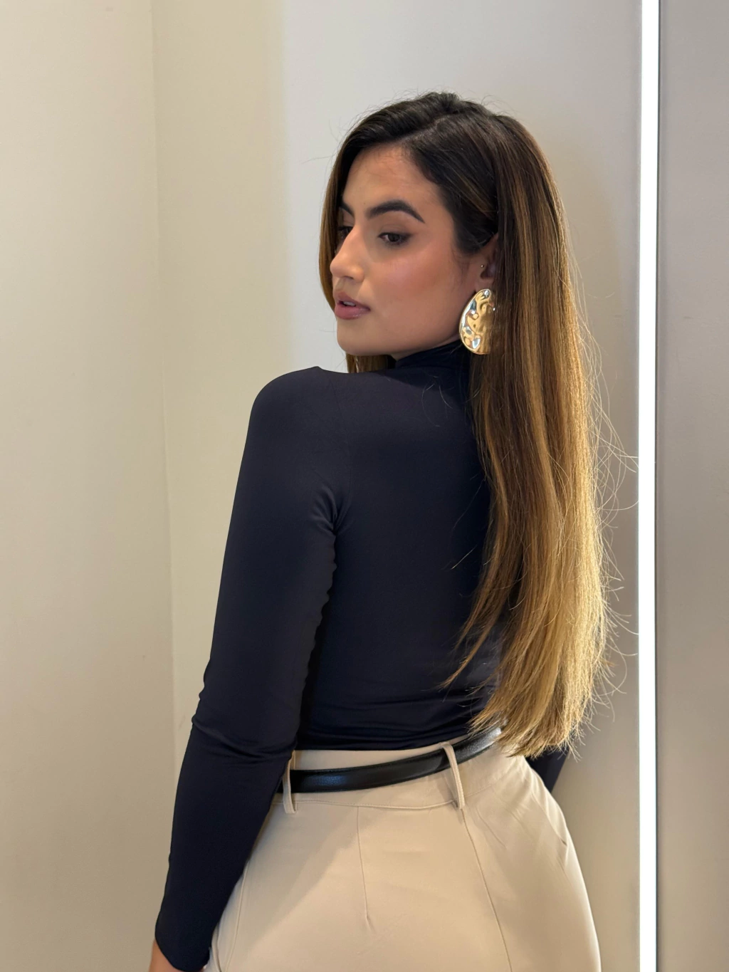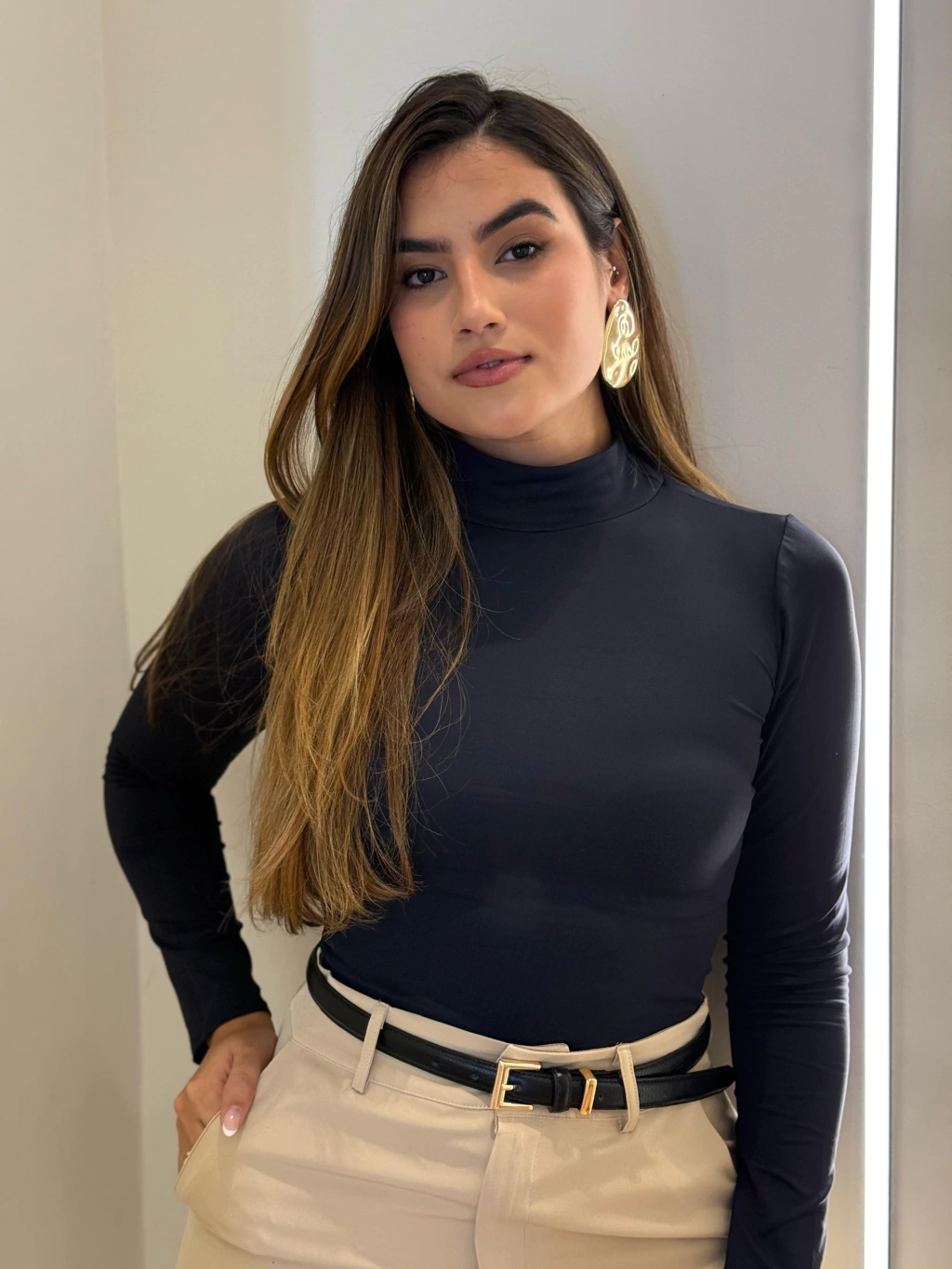 Com toque macio, caimento ajustado e acabamento impecável, o Body Gola Alta é aquela peça-chave que valoriza qualquer produção. Confeccionado em poliamida de alta qualidade, ele se molda ao corpo com conforto e elegância. Possui modelagem justa, manga longa e gola alta, perfeito para compor looks mais sofisticados ou sobreposições modernas. O tecido leve, com elasticidade, garante liberdade de movimentos sem abrir mão do estilo.