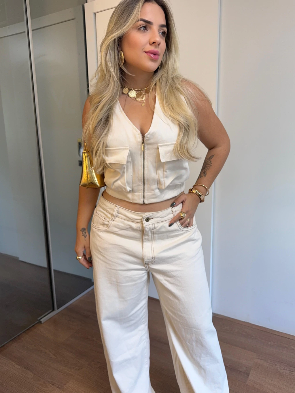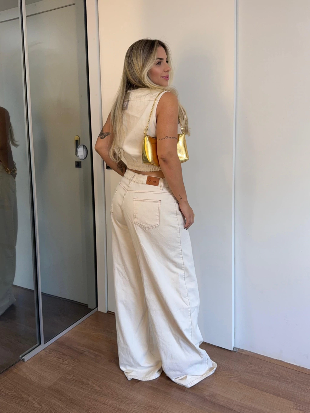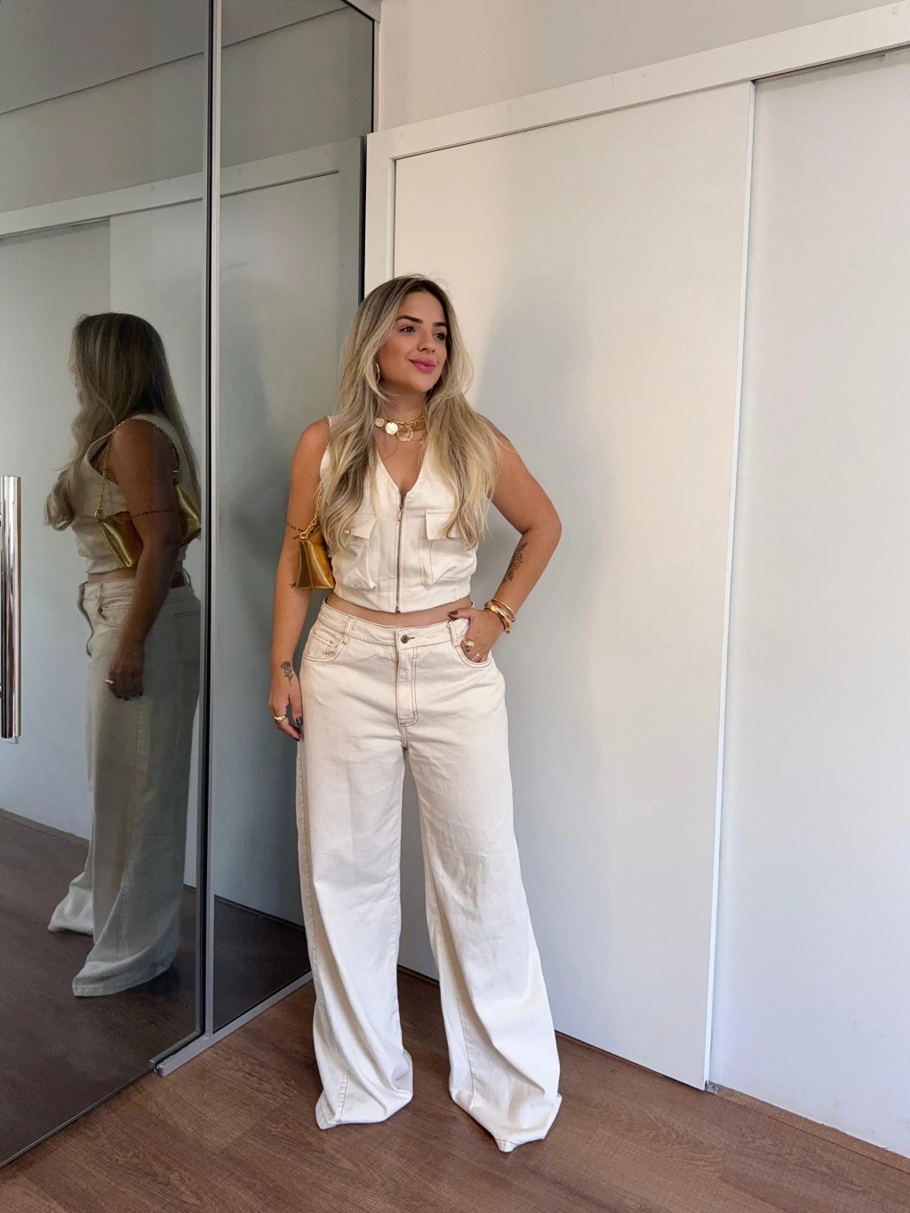 A Calça Eco Wide Leg é a peça que une estilo contemporâneo e acabamento impecável. Com modelagem wide leg, ela possui pernas amplas e retas desde o quadril, criando um efeito alongador e moderno, ideal para looks versáteis e cheios de presença.