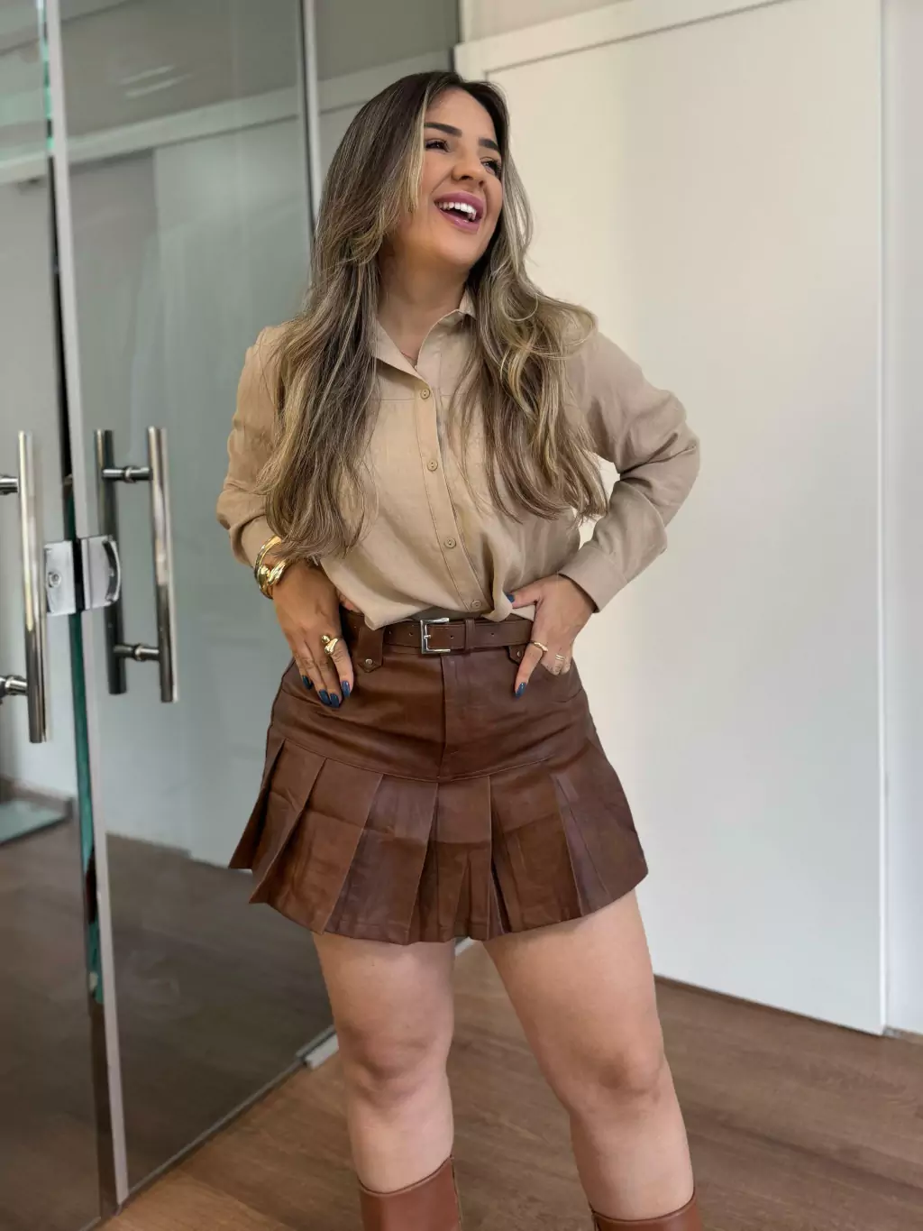 Seu corte reto com modelagem fluida valoriza diferentes silhuetas e oferece um caimento perfeito, acompanhando os movimentos com leveza. O comprimento é ideal para usar tanto por fora quanto por dentro da calça ou saia, trazendo versatilidade para composições mais casuais ou formais.