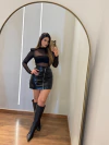 O modelo possui zíper frontal funcional, que além de estiloso, facilita na hora de vestir. Conta também com bolsos frontais embutidos, perfeitos para dar aquele charme extra à produção. O corte ajustado ao corpo valoriza as curvas e o comprimento ideal garante conforto e estilo, sem abrir mão da ousadia.